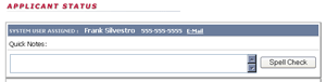 The applicant status page has 2 main sections. The quick note, part of Quick Status, which automatically flags an applicant account for immediate action.