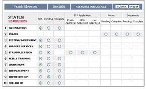 Updating an applicant's status could not be easier. Simply check the option button corresponding with the condition you want noted. Then click the Submit button. |